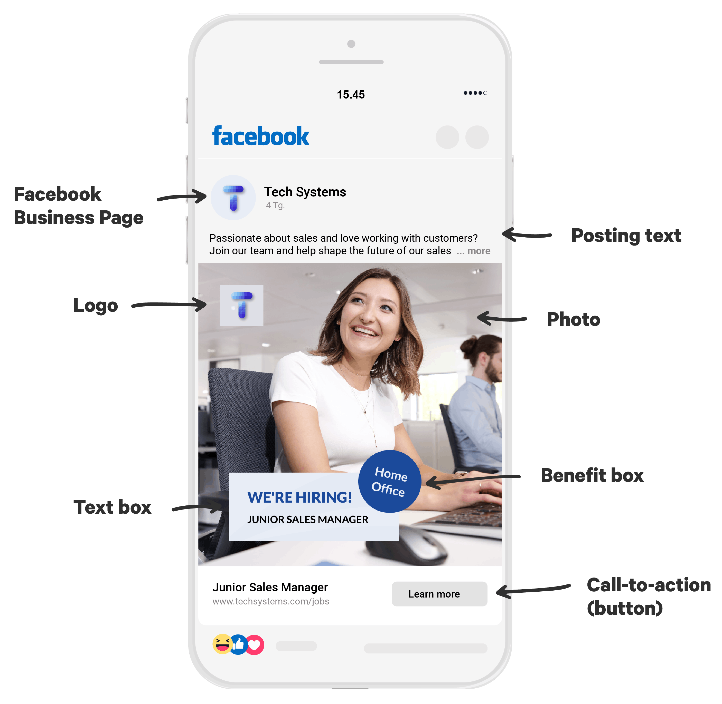 A promising way to search for applicants on social networks is recruitment advertising. In other words, you promote a post about your job offer to the right target group of applicants. A post on social networks consisting of images and text. The goal is to make the right candidates aware of your job offer without them actively looking for it.