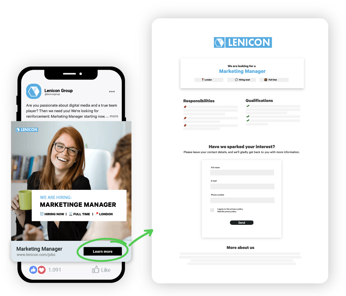 Recruiting Trends 2022: Linking Social Media Job Ad with kroot Applicant Contact Form © Photo: kroot GmbH